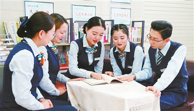 西宁市邮政分公司杨家寨支局员工集中学习“鸿雁天路”精神。