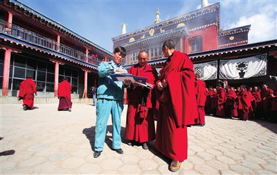 玉树藏族自治州分公司投递员黄修云深入寺院热情服务,受到僧人称赞。
