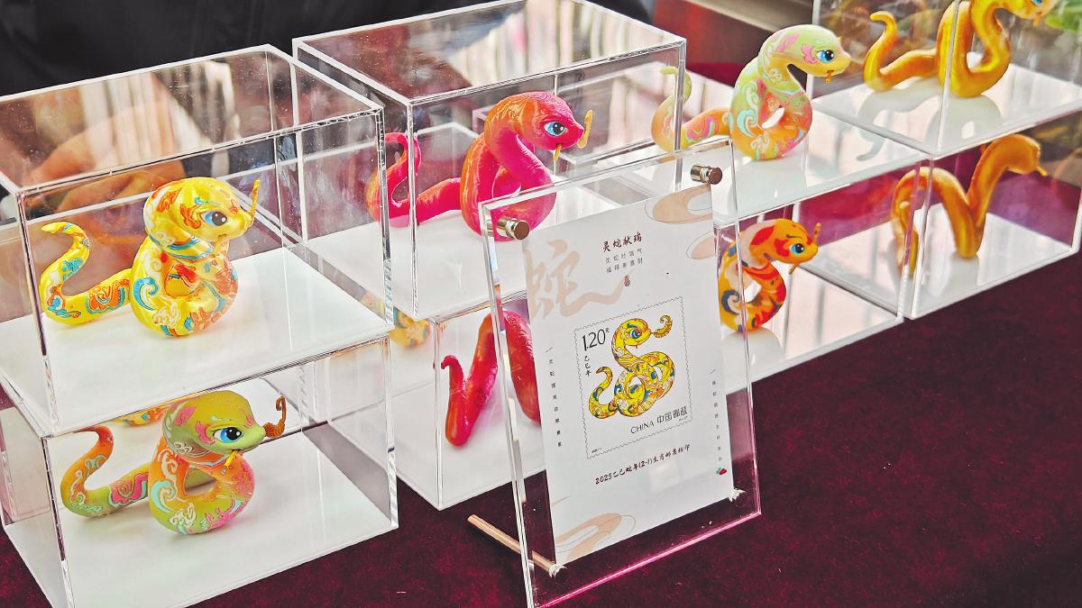 浙江省宁波市邮政分公司将生肖蛇形象以3D打印方式制作成文创产品,引发邮迷关注。□周蕾 摄