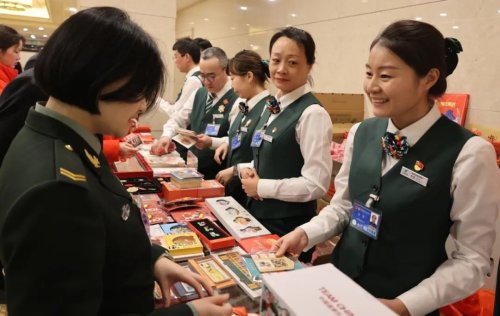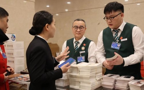 在驻地临时邮局的柜台前,代表委员和两会工作人员或翻阅《邮政服务指南》了解邮票邮品设计内涵,或用手机拍摄文创冰箱贴为亲友挑选礼物,更有集邮爱好者仔细对比邮品的工艺细节。“在两会服务的前期,我做足了功课,学习了产品特点和服务要点。能参加这次全国两会的服务感到非常荣幸,希望能圆满地完成此次任务。”第一次参加全国两会邮政服务的许勇介绍。