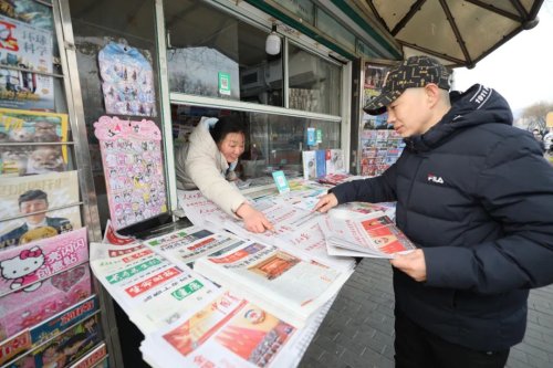 早8点,在北京西城区广安门外大街一处报刊亭的“两会专架”前,已有市民驻足翻阅专题报道。头版醒目的全国政协十四届三次会议在京开幕的消息吸引往来人群驻足浏览。