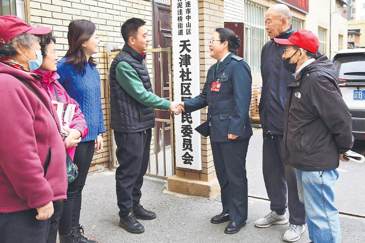 全国人大代表、辽宁省大连市中山区邮政分公司寄递事业部胜利桥普邮营业部站长赵明枝第一时间来到社区进行走访,并向居民宣讲全国两会精神,与大家分享参会体会。 □亢俊杰 刘晓明 摄