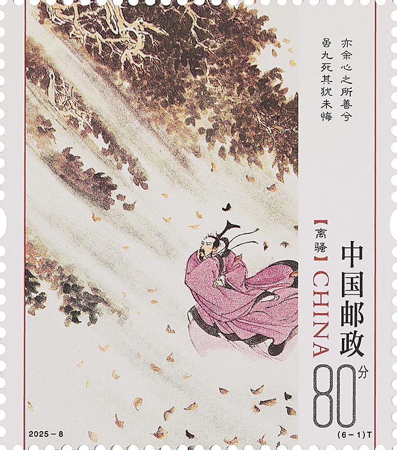 5月31日,《楚辞》特种邮票发行。该套邮票一套6枚,邮票图案名称分别为:“亦余心之所善兮 虽九死其犹未悔”“路曼曼其修远兮 吾将上下而求索”“诚既勇兮又以武终刚强兮不可凌身既死兮神以灵子魂魄兮为鬼雄”“遂古之初谁传道之上下未形何由考之”“后皇嘉树橘徕服兮受命不迁生南国兮深固难徙更壹志兮”“独耿介而不随兮愿慕先圣之遗教”。