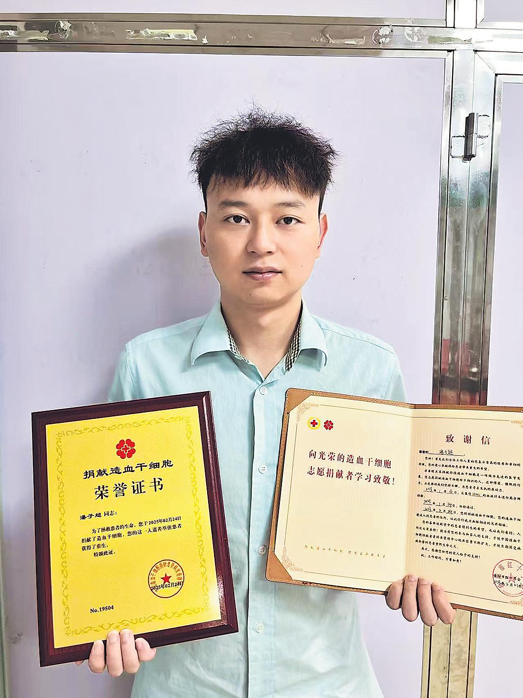 今年初,接到配型成功的电话后,想着能挽救一条生命,他内心激动不已,毫不犹豫地决定捐献。潘子超说:“能成为别人绝境中的万分之一匹配者,非常幸运。”